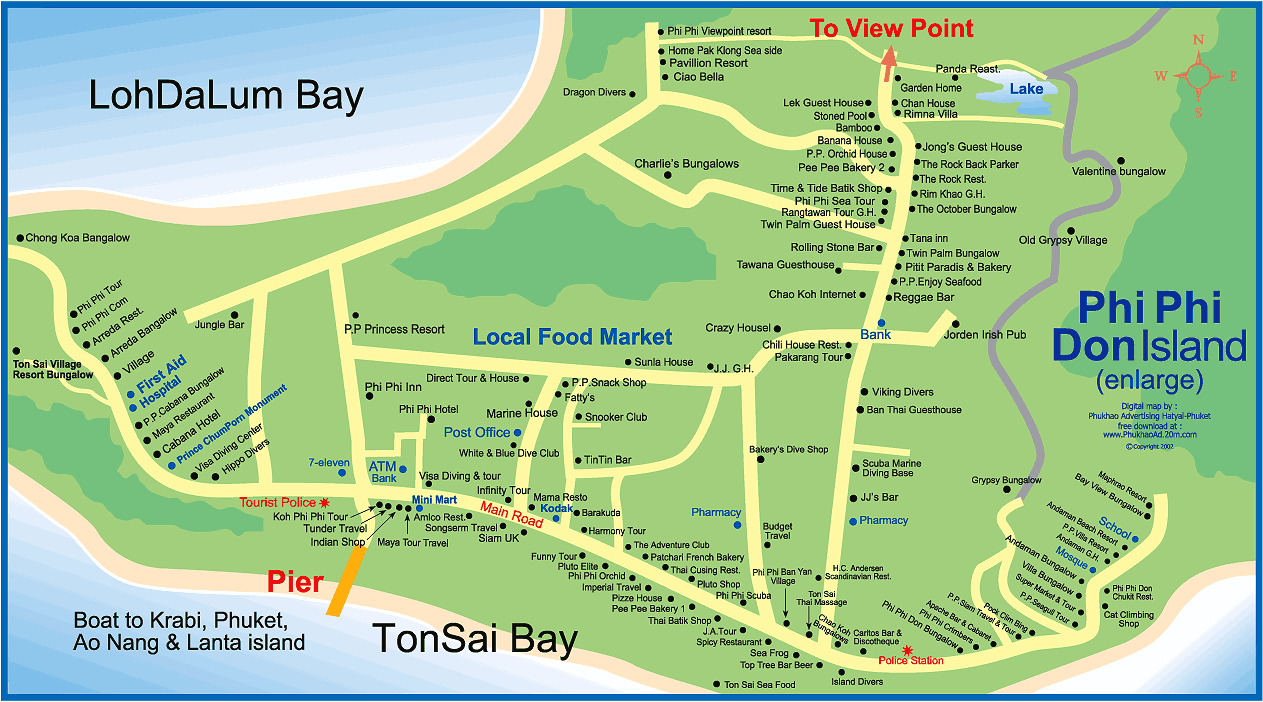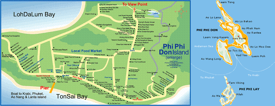 Para encontrar información sobre Tailandia hay un montón de guias en español, no hace falta contratar nada por agencia desde el país de origen, solo comprar un vuelo  a Bangkok y de ahí otro a Phuket. En Phuket hay muchisimas agencias de viaje que venden el ferry a Phi Phi con antelación incluyendo un taxi hasta el puerto por unos 350 bahts solo ida, siempre dependiendo de como sepas regatear.  Los hoteles se encuentran sobre la marcha, los hay de todo tipo y precios pero para hacerse una idea algunos buenos buscadores: Sawadee,  Agoda  y Asiarooms.