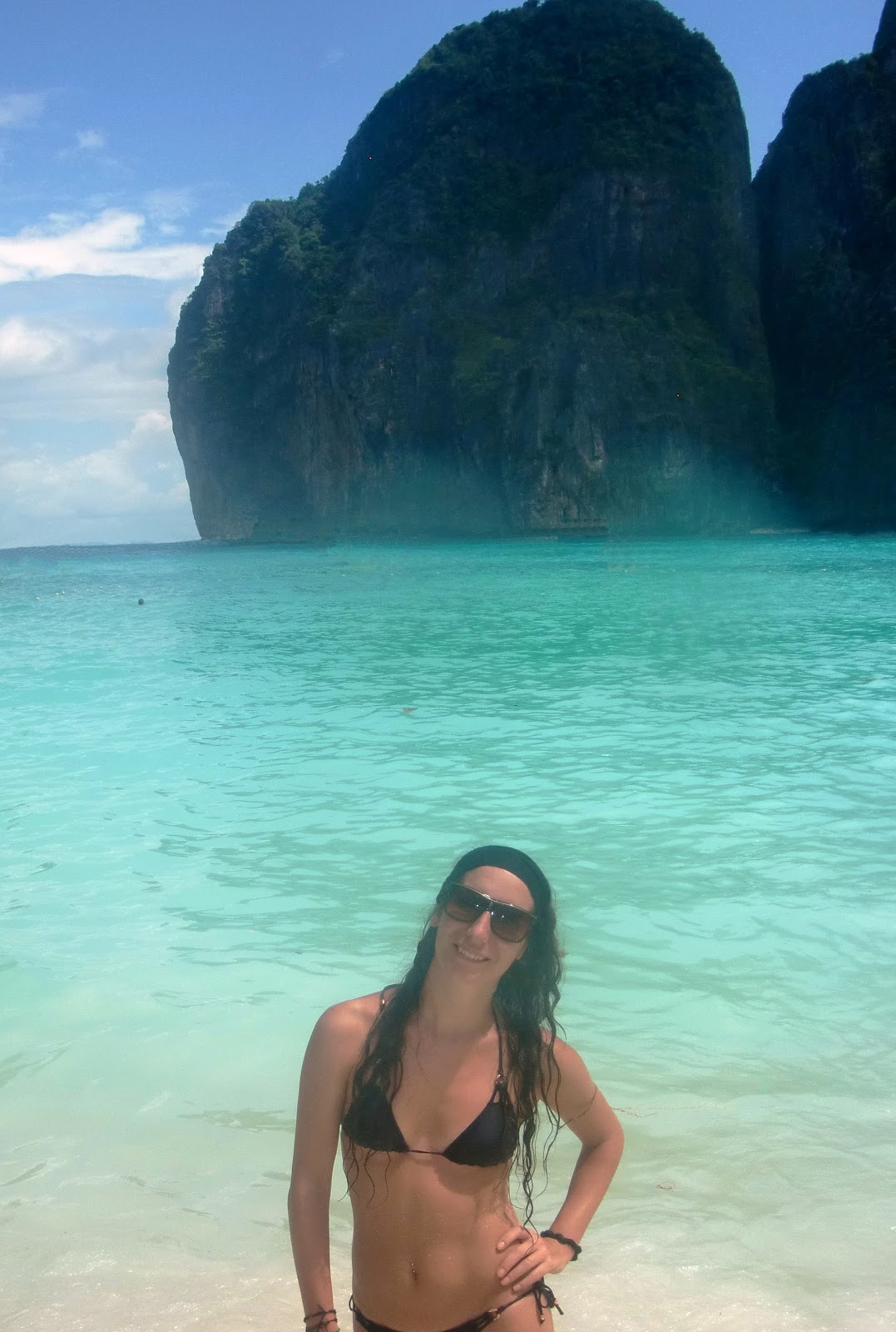 Maya Bay es una bahía situada entre acantilados con vegetación de un color verde tan intenso que impacta con el oscuro de sus rocas y a su vez con la arena blanca y sus aguas cristalinas, aguas que tornan a su capricho en azul y verde simultaneamente. Lo único que puede estropear este armonioso estallido de colores es la masiva llegada continua de los turistas en barcos de todo tipo, y lo que conlleva. La clave está en acercarse a la orilla y fijar la mirada en el horizonte e intentar olvidar a las decenas de asiáticos que te rodean vestidos de pies a cabeza en esa playa calurosa. Además parecía que ninguno estaba contento con la situación, es que gastaban todos por igual cara de cansados y aburridos, huyendo de cualquier pequeño rayo sol que pudiera broncear su tan deseada tez blanca.
