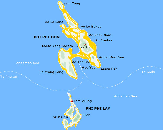 Koh Phi Phi, en Krabi, es un archipiélago en el  mar de Andamán del suroeste Tailandés, a una hora en ferry de Phuket. Phi Phi Leh es donde se localiza Maya Bay, conocida por escenario de varias películas, isla deshabitada al contrario de Phi Phi Don que a través de un hermoso entorno natural explota su belleza con el turismo, quizá masivo, pero manteniendo sus básicos: playas fabulosas, flora frondosa, naturaleza en estado puro formando vistas espectaculares.