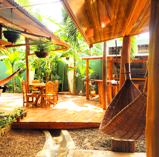 Al llegar a Tamarindo tenia varios nombres apuntados de hostales que me habían recomendado, pero al pasar por delante de Coral Reef Surf Hostel no pude evitar pararme. Este lugar tiene un ambiente especial que trasmite hacia fuera sin lugar a dudas. En la parte delantera del hostel tienen un restaurante propio pero además hay una creperia, una frutería y una tienda de bikinis, obvio que me iba a llamar la atención. Entré y conocí a Andrea un italiano super amable del equipo del hostel quien me presentó al dueño Jeff. Jeff es un surfer americano de mente abierta y creativa que sabe muy bien lo que el publico en Tamarindo busca, así que tiene el hostel equipado con todo lo necesario. Septiembre es temporada baja y el hostel solo se llenó porque coincidía con un marathon en el pueblo. Segun después me contaron, Coral Reef es conocido por sus fiestas y porque siempre hay gente. La verdad, a mi me pareció el lugar perfecto para estar, tranquilo y con empleados serviciales y amables.