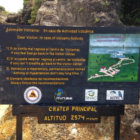 En el final de la caminata hay un mirador que da las vistas al cráter del volcán. Desde hace 5 años sale una fumarola debido a la evaporación del agua que ha formado una laguna por las lluvias. Esa fumarola es un humo blanco espeso que no deja ver completamente el cráter. Aunque nosotros tuvimos suerte y vimos los diferentes colores de los estratos y la lava.