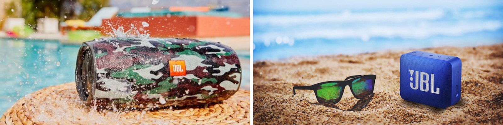 – Lleva una bocina/speaker portátil para disfrutar de tu música favorita hamaca frente al mar. Mi favorito siempre será JBL resistente al agua en formato grande (foto izquierda) o el altavoz JBL pequeño es perfecto para viajes (foto derecha).