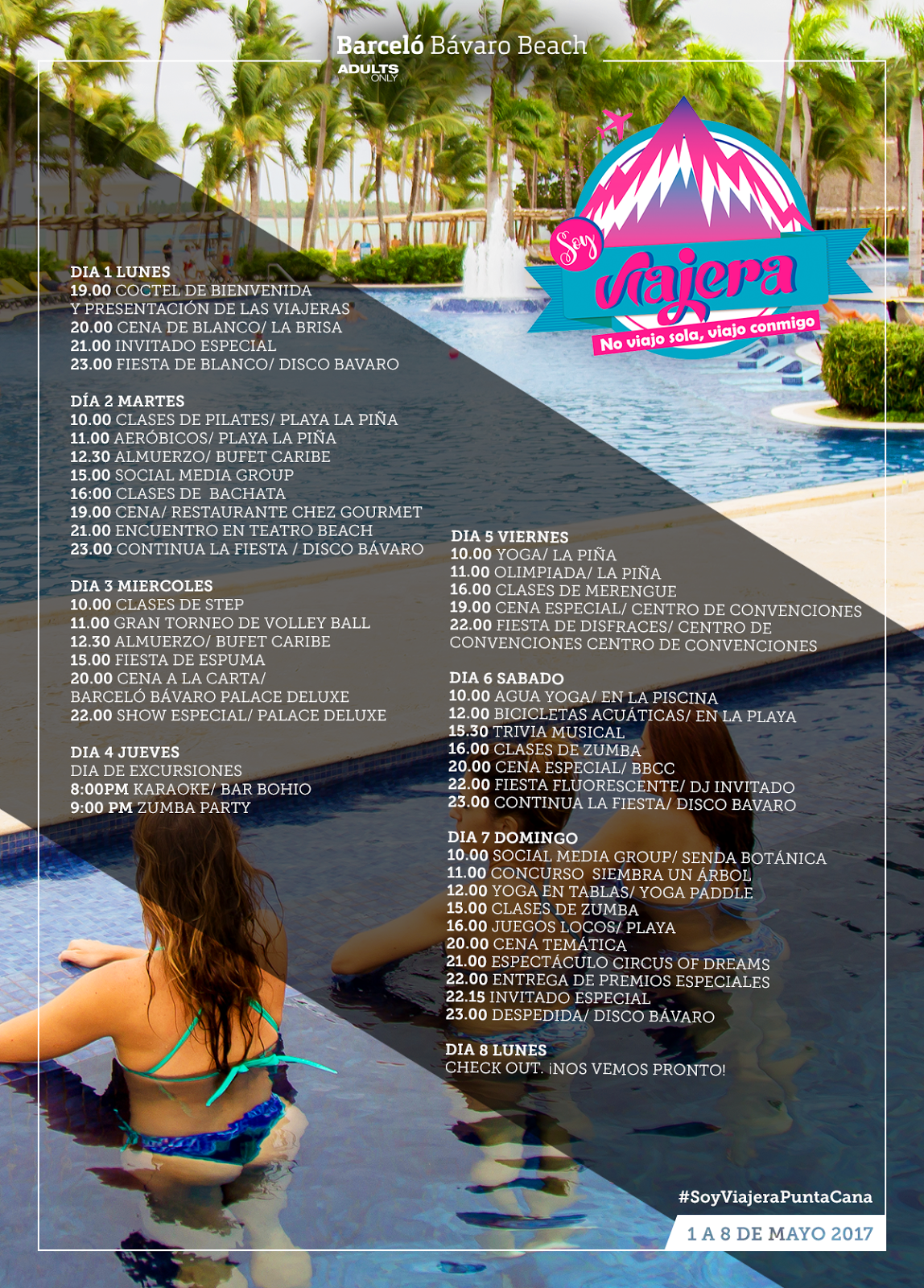 Bachata, ron, sonidos del mar, arena blanca, aguas turquesas, risas con amigas, planes de nuevos viajes futuros…. Eso es parte del programa.