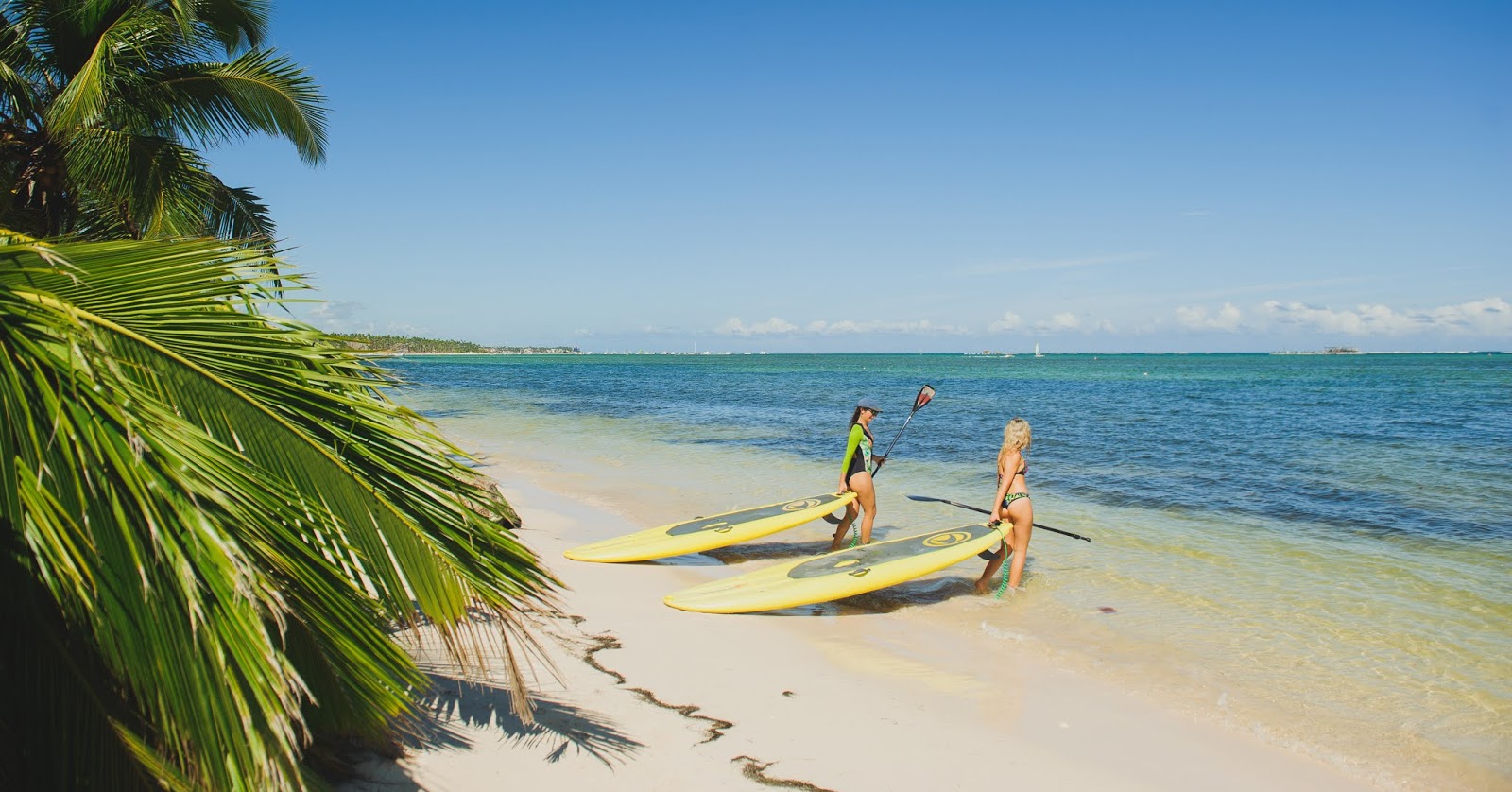 Aquí estamos Kaydi Archer y yo al final de la playa del Barceló Bávaro Grand Resort para una sesión de Stand Up Paddle con nuestros COSTA bikinis, que días tan divertidos siempre con ella en el agua.