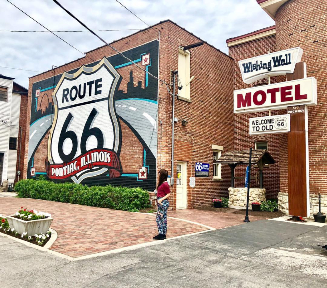 La primera parada fue en Pontiac, donde hay un museo y un mural para dar comienzo a la ruta. De hecho se puede encontrar como forma de museo un bus en la parte de atrás del edificio donde un artista vivió y recorrió la Ruta 66 durante años.