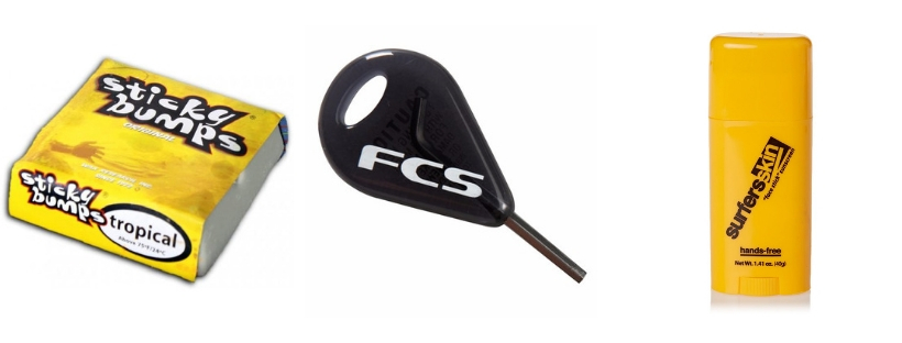 1. Kit de cera/parafina, llave de quillas, crema del sol, bolsa pequeña waterproof.